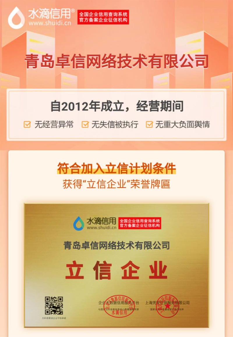 / 本公司被中國企業(yè)信用檔案庫收錄,授立信企業(yè)牌匾