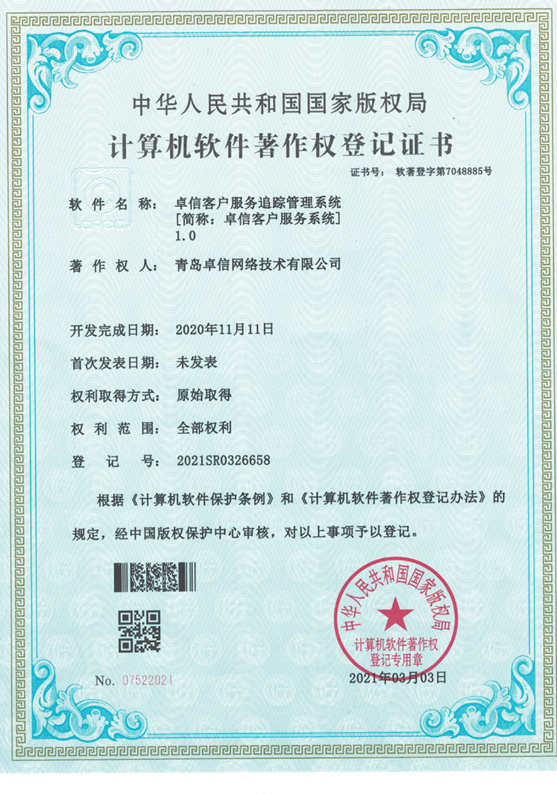 本公司客戶服務追蹤系統(tǒng)獲得軟件著作權